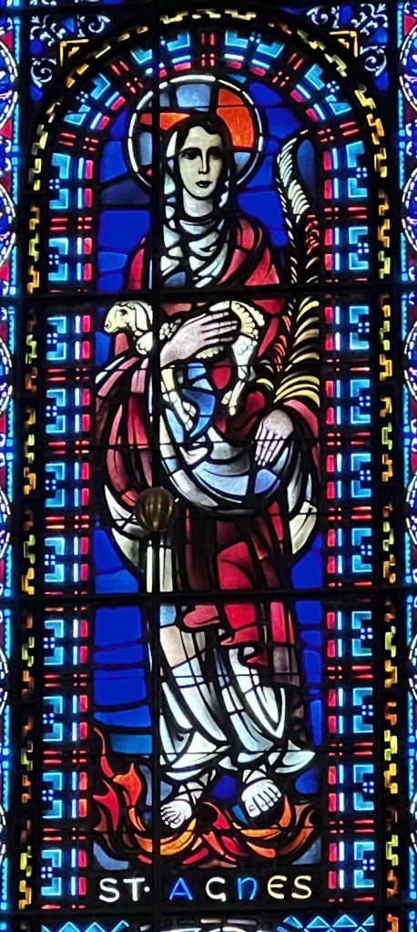 The Church of St. Agnes in Agony (Chiesa di Sant’Agnese in Agone) is the gorgeous baroque centerpiece of the legendary Piazza Navona in Rome. There you can pray and reflect on the faith and bravery of this young woman in front of her remains on the site of her martyrdom in the year 304. We weren’t allowed to take photos inside the church, but you can find a gallery of photos on the Sant’Agnese in Agone Wikipedia Page.