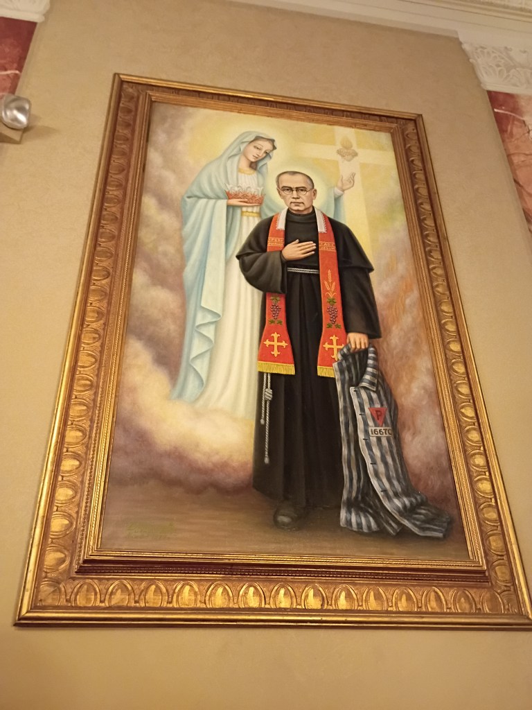 Priest and Martyr, 1894-1941 Feast Day: August 14th Symbols: prison uniform from Auschwitz, prisoner #16670, two crowns (purity and martyrdom)
